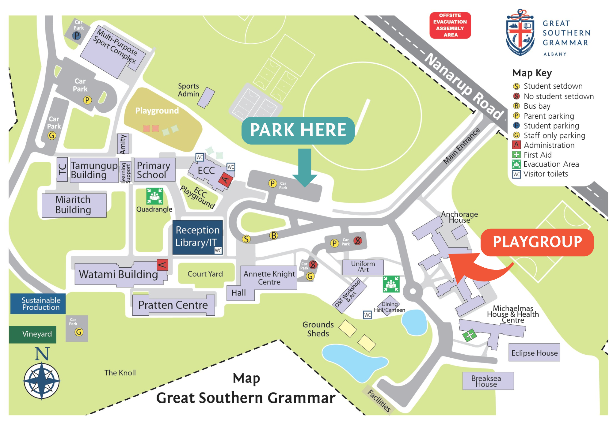 We invite parents to park in the Early Childhood carpark and walk the path around to the Anchorage House.